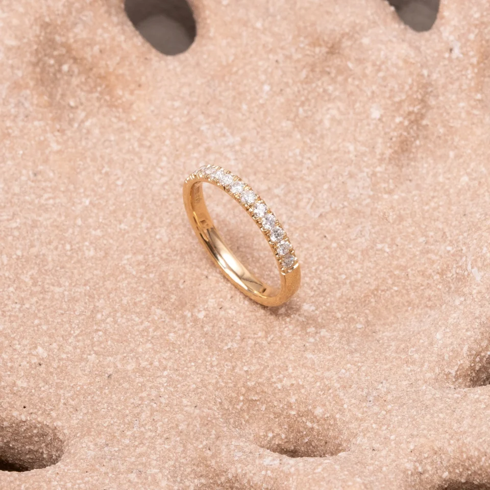 Alliancering i 14kt guld med hvide brillianter. Der kan altid tilføjes flere sten til allianceringen senere, f.eks. i anledning af årsdage.